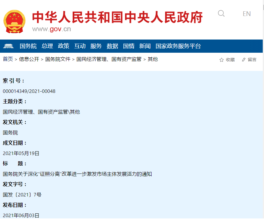 國發(fā)〔2021〕7號各省、自治區(qū)、直轄市人民政府,國務(wù)院各部委、各直屬機(jī)構(gòu):開展“證照分離”改革,是落實(shí)黨中央、國務(wù)院重大決策部署,深化“放管服”改革、優(yōu)化營商環(huán)境的重要舉措,對于正確處理政府和市場關(guān)系、加快完善社會主義市場經(jīng)濟(jì)體制具有重大意義?!ぁぁ?p/>